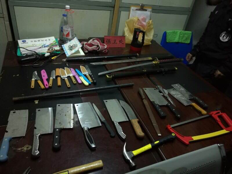 经过2个半小时的检查,共清查出管制刀具40余把,收缴大功率电吹风、电热锅、“热得快”等电器50余件,较好的消除了宿舍区安全隐患。