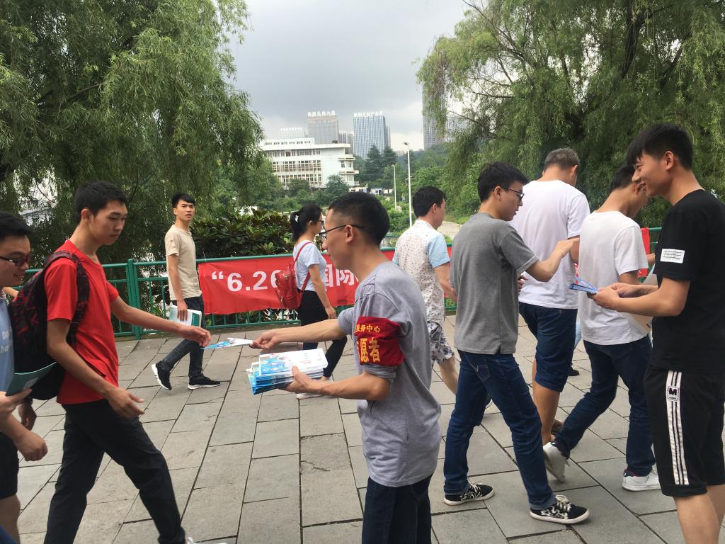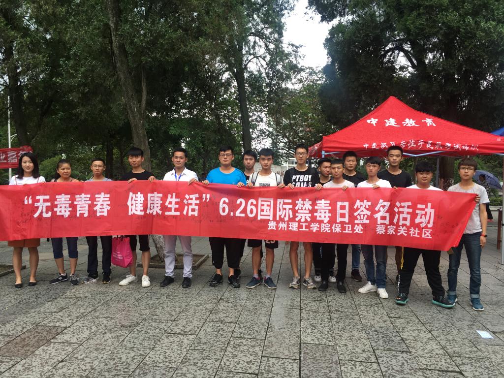 在第31个国际禁毒日到来之际,为进一步增强广大师生禁毒意识,自觉参与抵制毒品、远离毒品犯罪,6月22日保卫处联合蔡家关社区服务中心在校园内开展“无毒青春,健康生活”为主题的国际禁毒日宣传及签名活动。